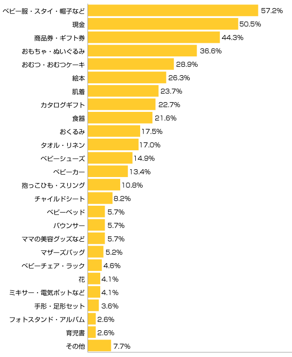 今回、ご投票いただいた皆さんが“出産祝い”にいただいたものは