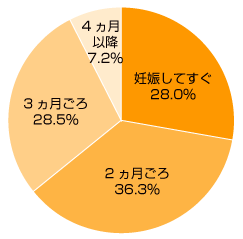 妊娠初期から出産まで、おさまった時期はつわりが始まった時期よりばらつきが見られました。