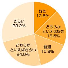 「どちらかといえば好き」という方は18.5%。「普通」という方が15.8%。「好き」という方は12.5%と少なめでした。